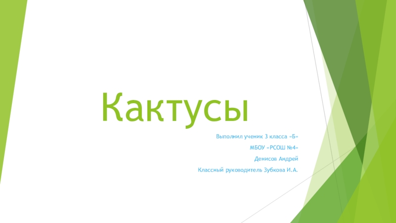 Презентация, доклад по окружающему миру Кактусы. Выполнена учеником 3 класса Денисовым Андреем.