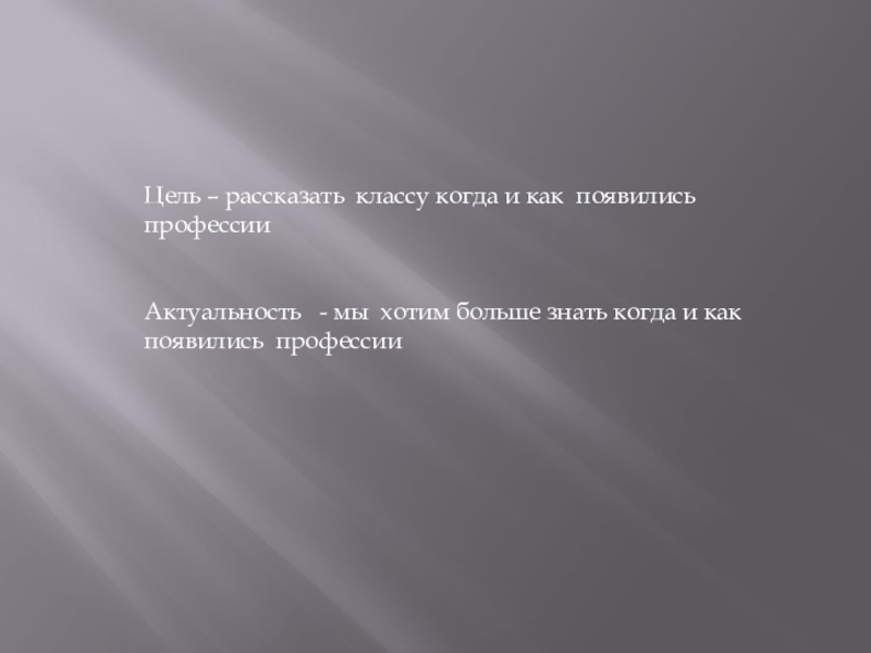 Цель – рассказать классу когда и как появились профессииАктуальность