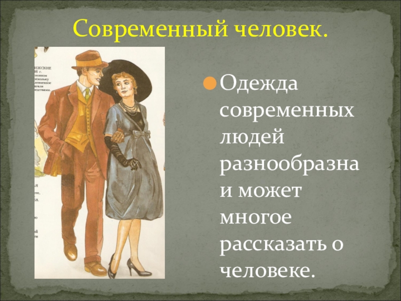 Современный человек.Одежда современных людей разнообразна и может многое рассказать о человеке.