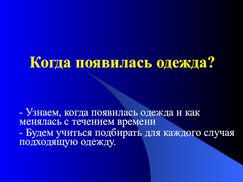 - Будем учиться подбирать для каждого случая подходящую одежду.
