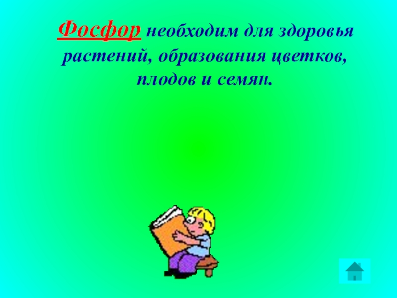 Слайд 14Фосфор необходим для здоровья растений, образования цветков, плодов и семян.