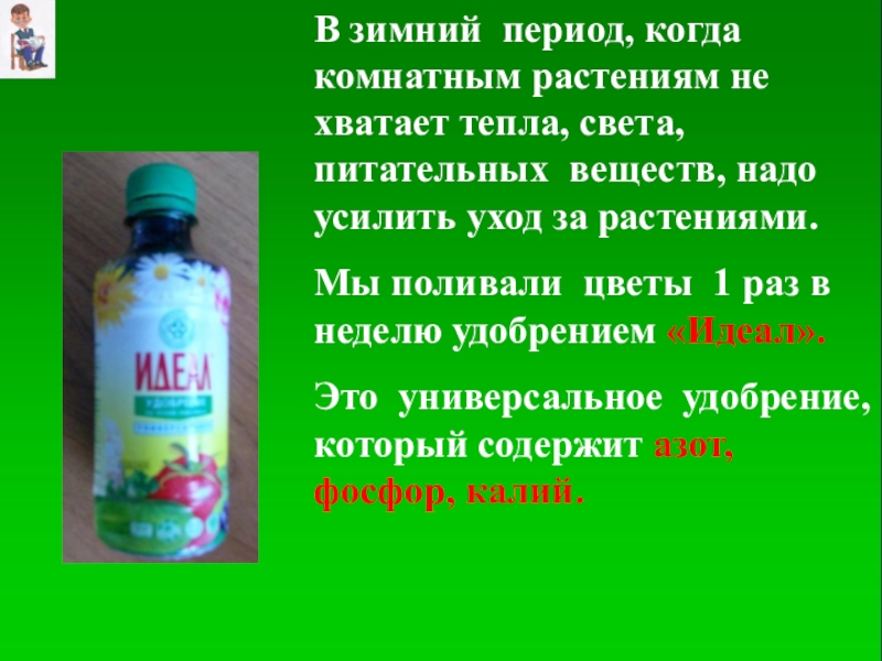 Слайд 11В зимний период, когда комнатным растениям не хватает тепла, света, питательных
