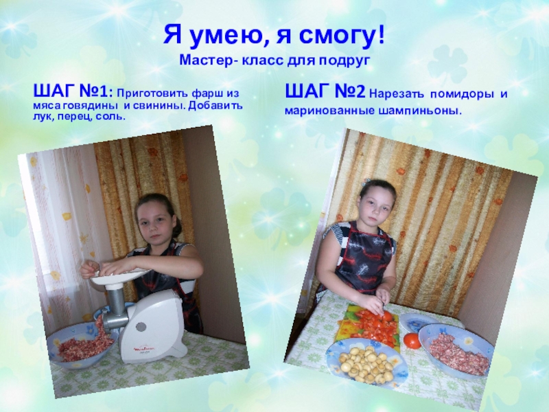 ШАГ №2 Нарезать помидоры и маринованные шампиньоны.