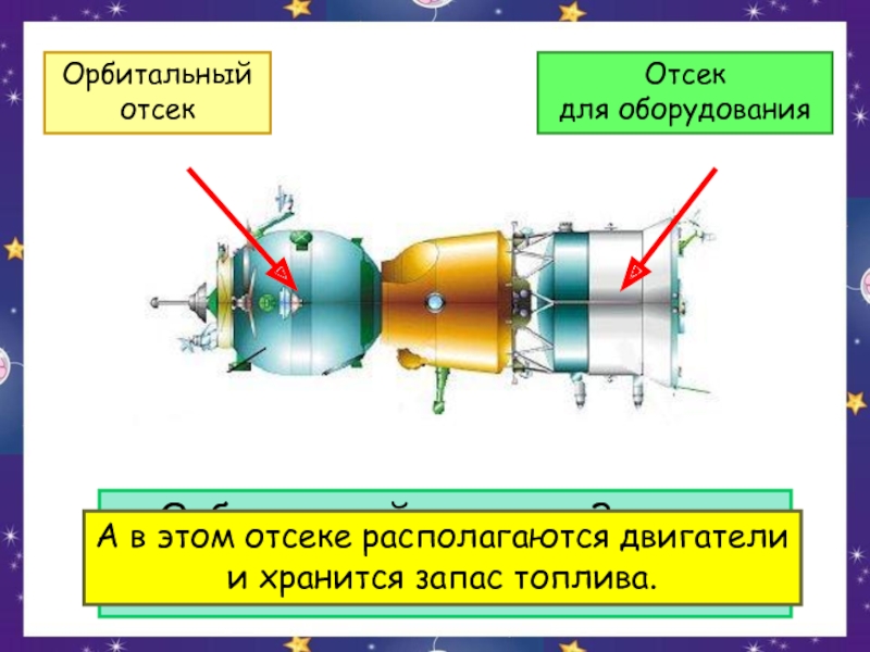 В главном отсеке космонавты стартуют с Земли. Отсюда они управляют кораблём,