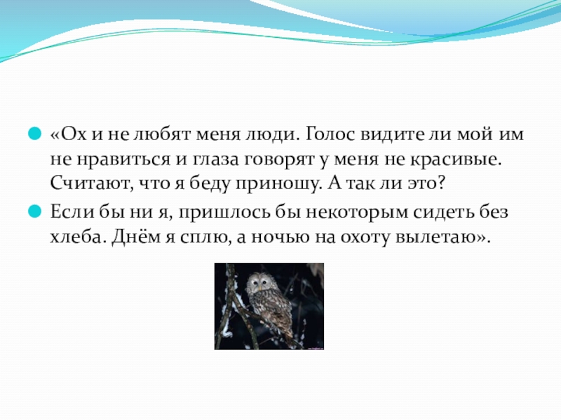 Слайд 7«Ох и не любят меня люди. Голос видите ли мой им
