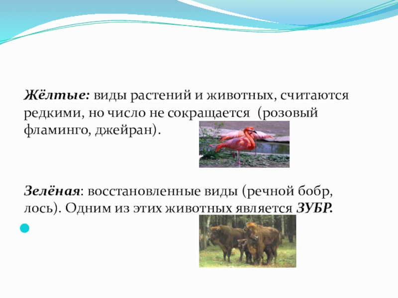 Зелёная: восстановленные виды (речной бобр, лось). Одним из этих животных является ЗУБР.