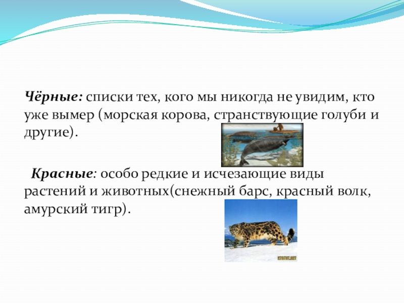 Слайд 5Чёрные: списки тех, кого мы никогда не увидим, кто уже вымер
