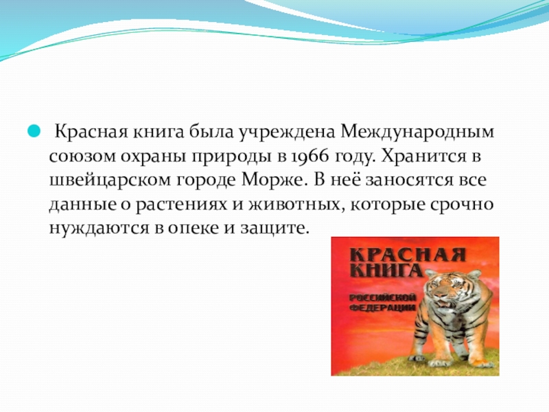 Слайд 4 Красная книга была учреждена Международным союзом охраны природы в 1966