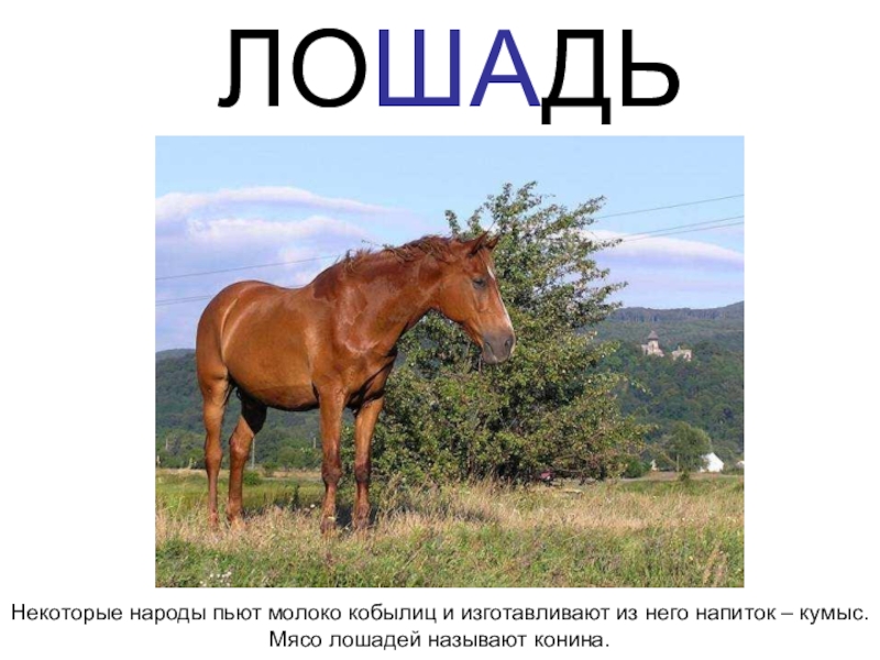 Некоторые народы пьют молоко кобылиц и изготавливают из него напиток – кумыс. Мясо лошадей называют конина.