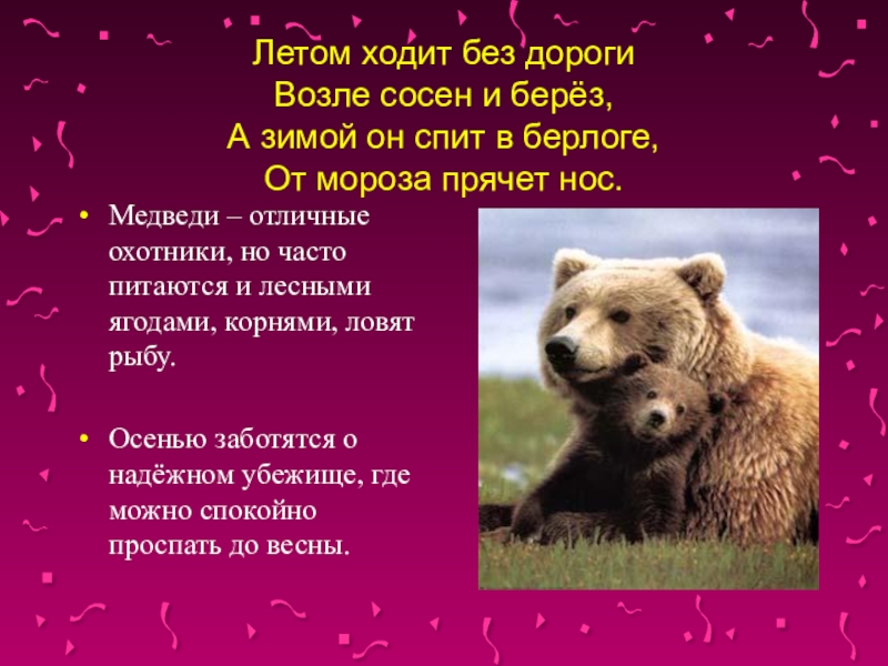 Медведи – отличные охотники, но часто питаются и лесными ягодами, корнями, ловят рыбу.