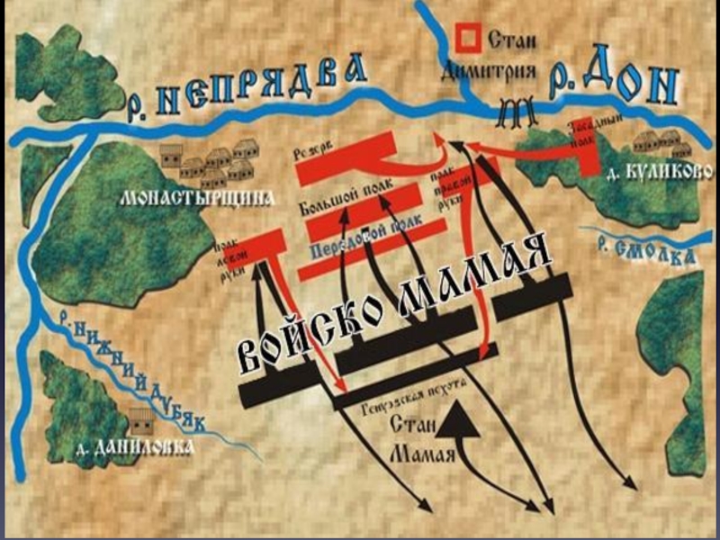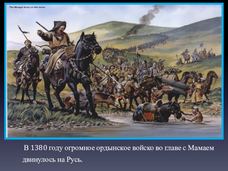 Слайд 6 В 1380 году огромное ордынское войско во главе