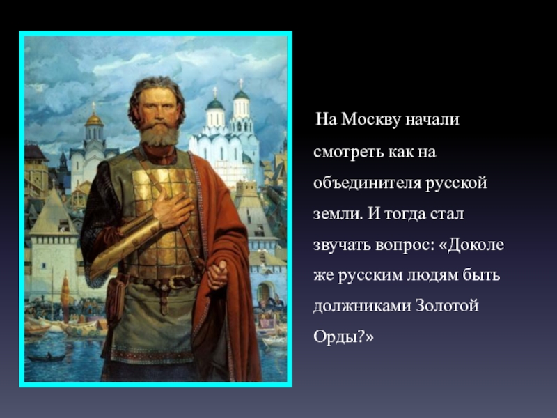 земли. И тогда стал звучать вопрос: «Доколе же русским людям быть должниками Золотой Орды?»