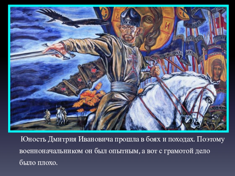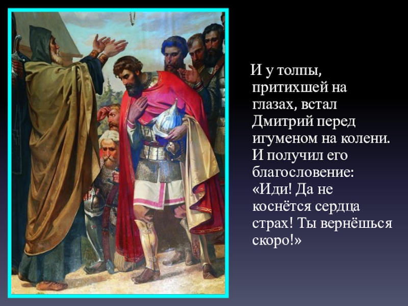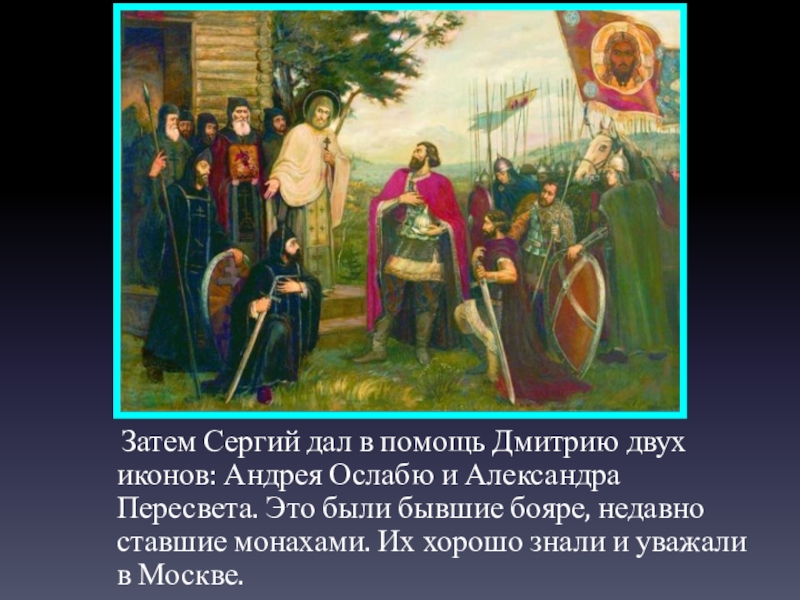 Слайд 11 Затем Сергий дал в помощь Дмитрию двух иконов: Андрея
