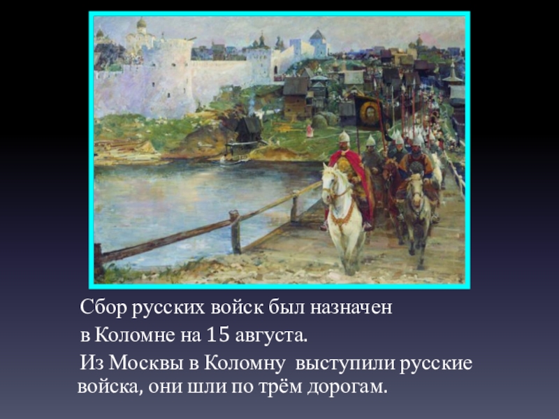 Из Москвы в Коломну выступили русские войска, они шли по трём дорогам.