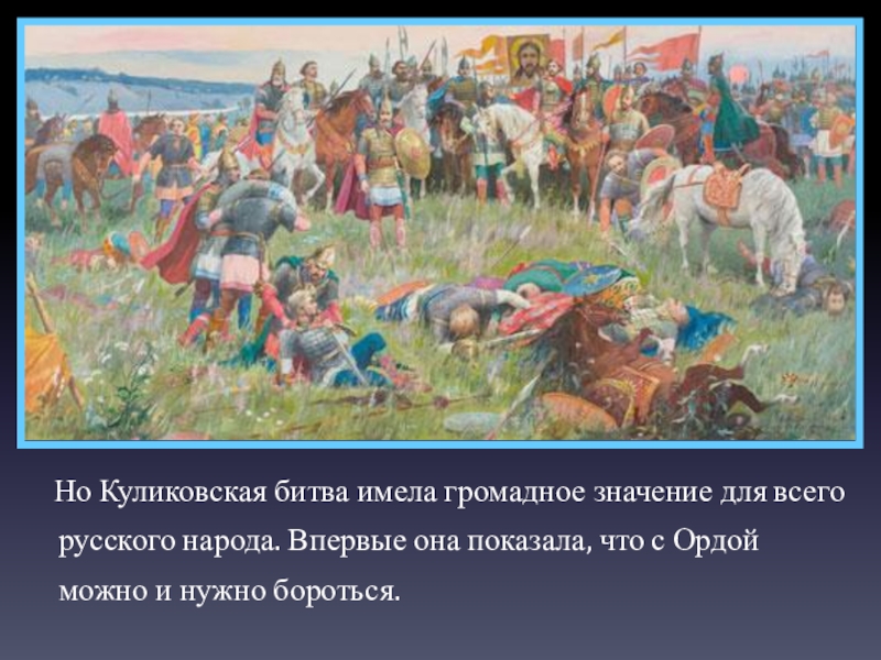 Слайд 31 Но Куликовская битва имела громадное значение для всего русского