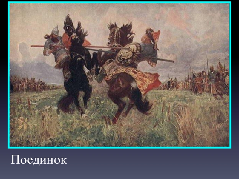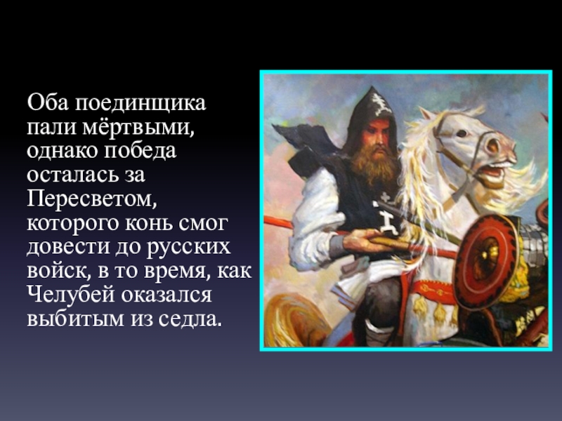 Слайд 22 Оба поединщика пали мёртвыми, однако победа осталась за Пересветом,