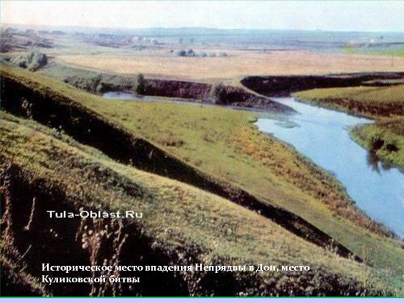 Слайд 14Историческое место впадения Непрядвы в Дон, место Куликовской битвы