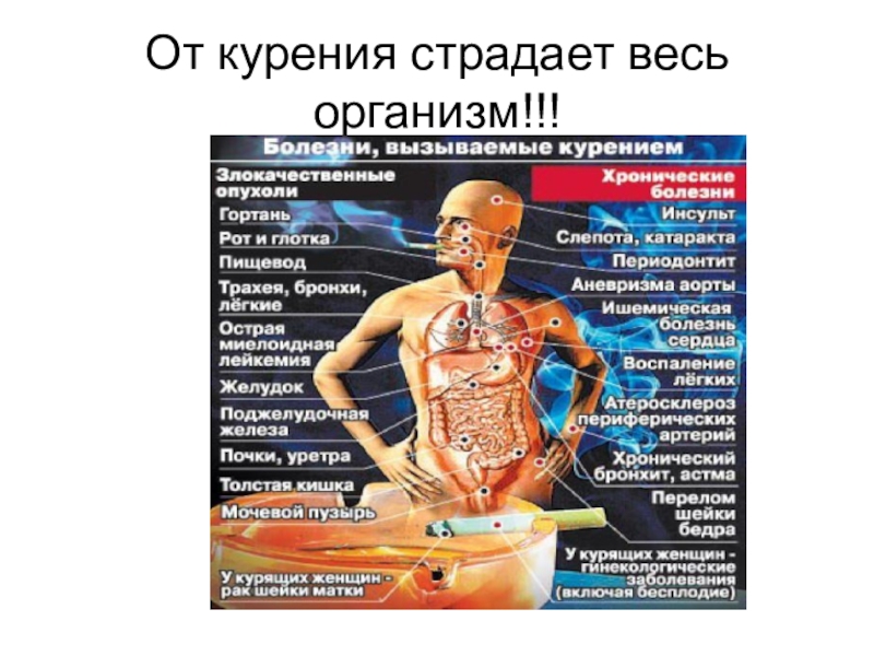 Слайд 5От курения страдает весь организм!!!