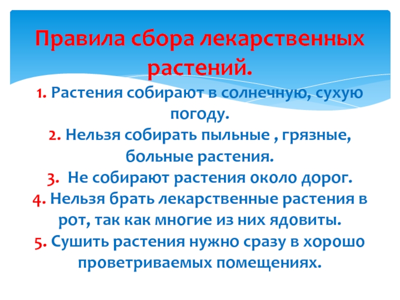 4. Нельзя брать лекарственные растения в рот, так как многие из них ядовиты.