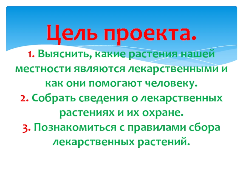 1. Выяснить, какие растения нашей местности являются лекарственными и как