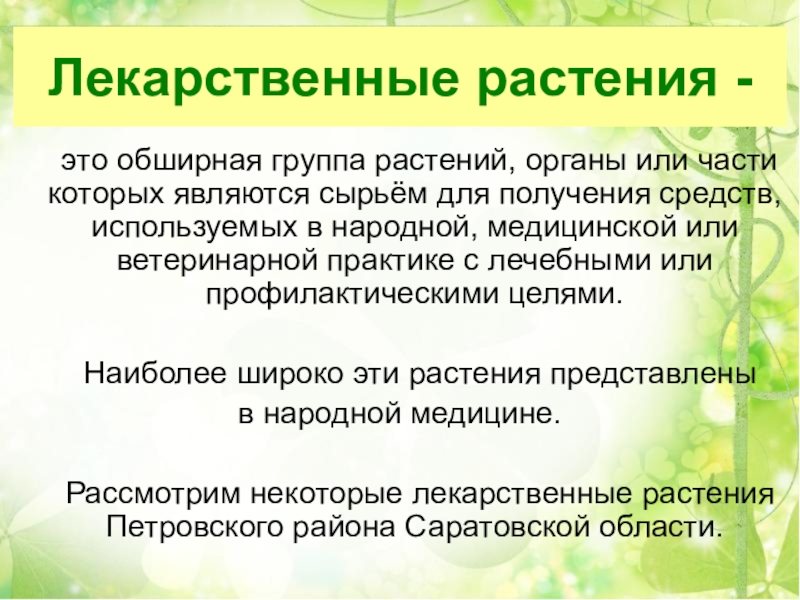 Рассмотрим некоторые лекарственные растения Петровского района Саратовской области.