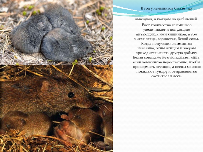 Слайд 5 В год у леммингов бывает до 5 выводков, в каждом