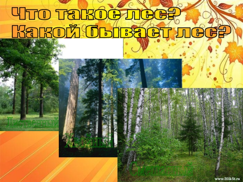 Что такое лес?Какой бывает лес?ЛиственныйХвойныйСмешанный