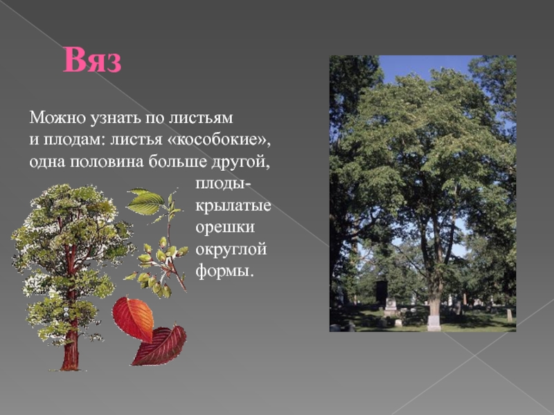 ВязМожно узнать по листьям и плодам: листья «кособокие»,одна половина больше другой,