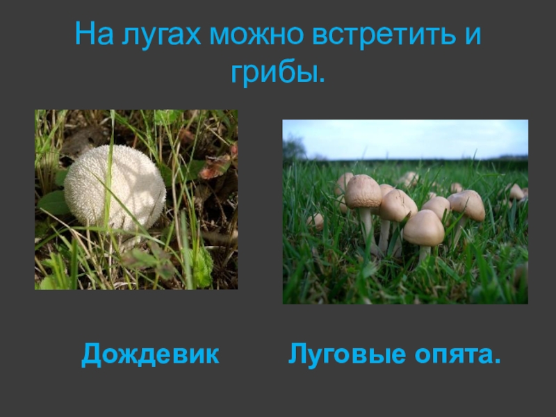 На лугах можно встретить и грибы.ДождевикЛуговые опята.