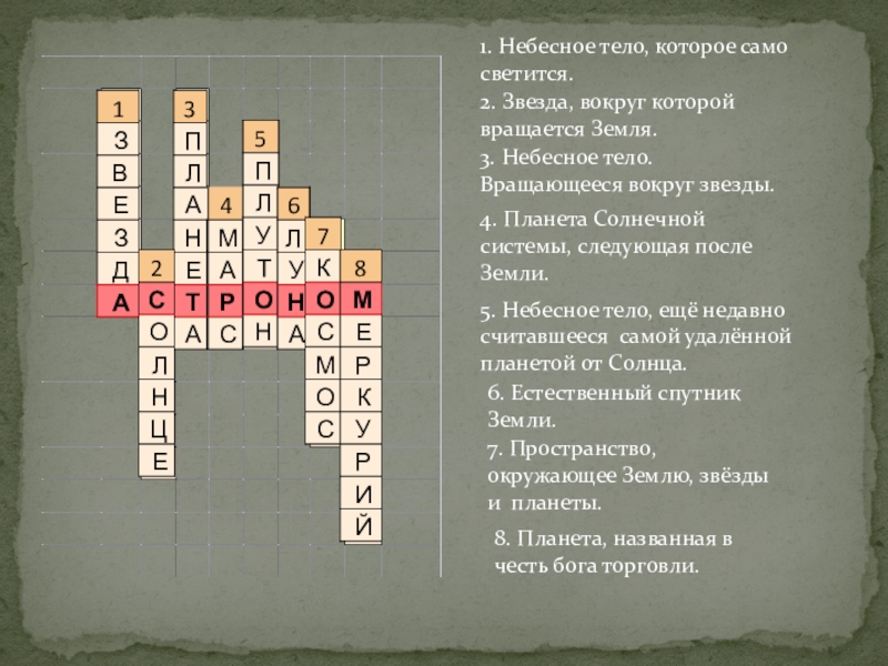 7. Пространство, окружающее Землю, звёзды и планеты.