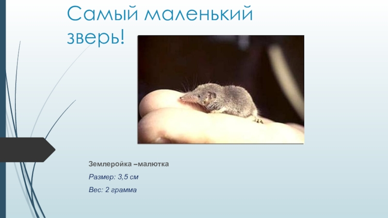 Самый маленький зверь! Землеройка –малюткаРазмер: 3,5 смВес: 2 грамма