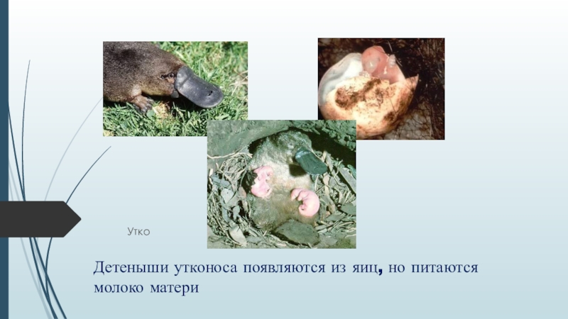 Слайд 7Детеныши утконоса появляются из яиц, но питаются молоко матери