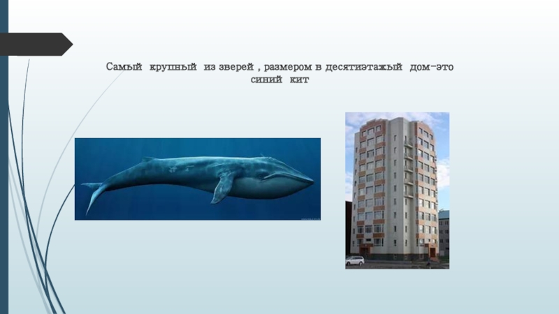Слайд 9Самый крупный из зверей, размером в десятиэтажый дом-это синий кит