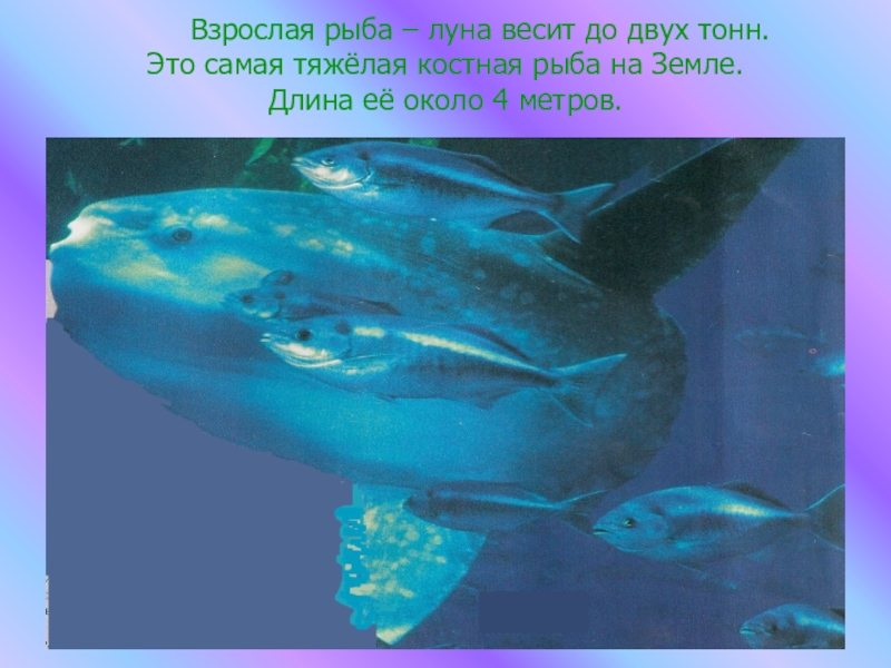 Взрослая рыба – луна весит до двух тонн.  Это самая тяжёлая