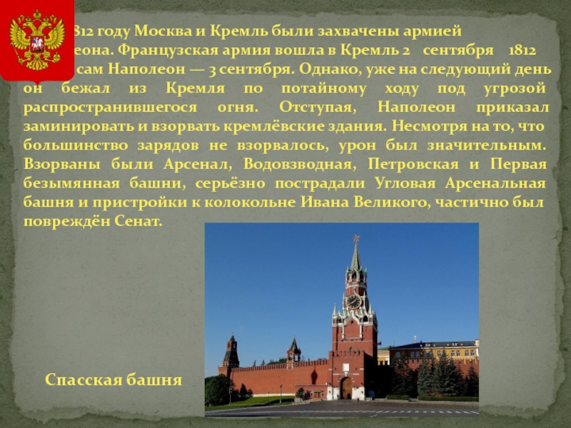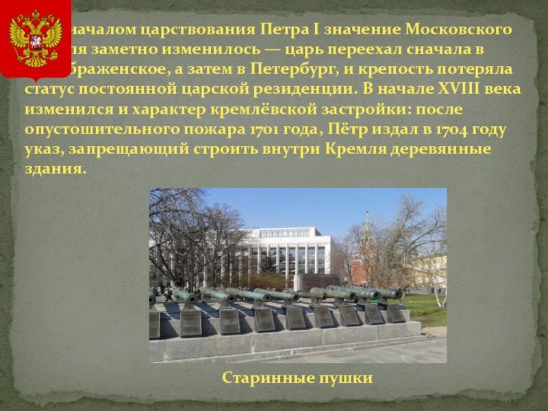 Расположен на левом берегу Москвы-реки — Боровицком холме, при впадении в неё реки Неглинной. В плане Кремль — неправильный треугольник площадью 27,5 гектара (га). Южная стена обращена к Москве-реке, северо-западная — к Александровскому саду, восточная — к Красной площади.