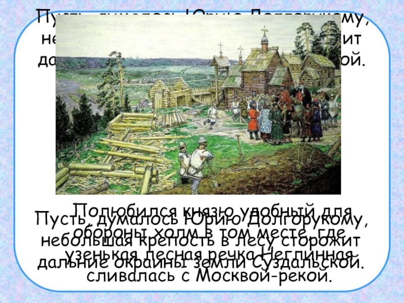 Полюбился князю удобный для обороны холм в том месте, где узенькая лесная речка Неглинная сливалась с Москвой-рекой.