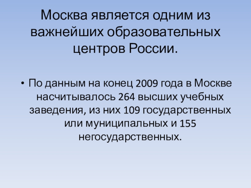 Слайд 15Москва является одним из важнейших образовательных центров России.