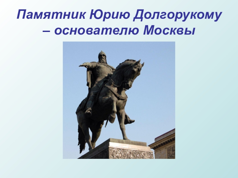 Слайд 4Памятник Юрию Долгорукому – основателю Москвы