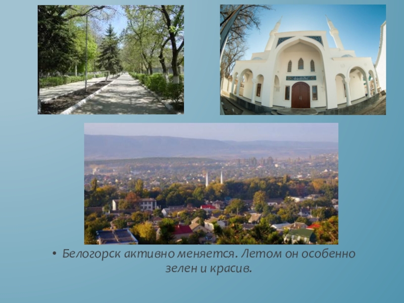 Слайд 9Белогорск активно меняется. Летом он особенно зелен и красив.