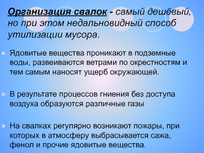 Ядовитые вещества проникают в подземные воды, развеиваются ветрами по окрестностям и тем самым наносят ущерб окружающей.