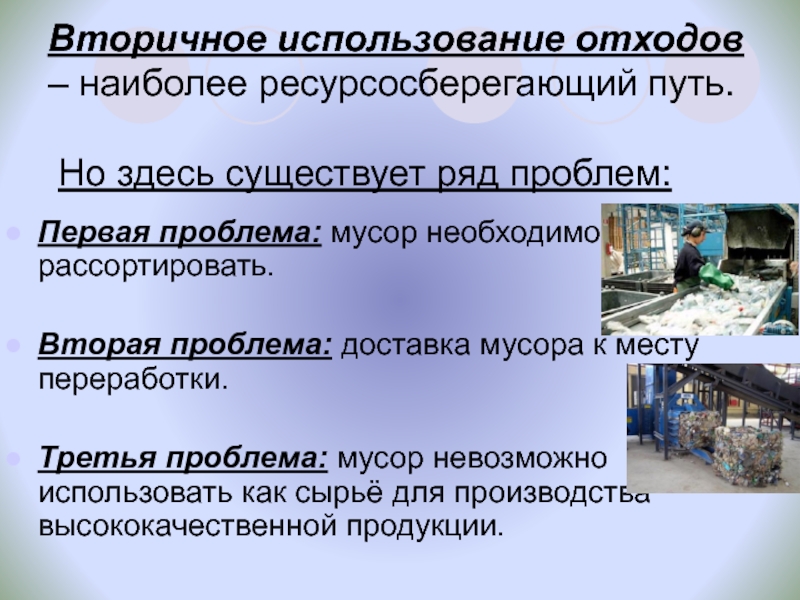 Третья проблема: мусор невозможно использовать как сырьё для производства высококачественной продукции.