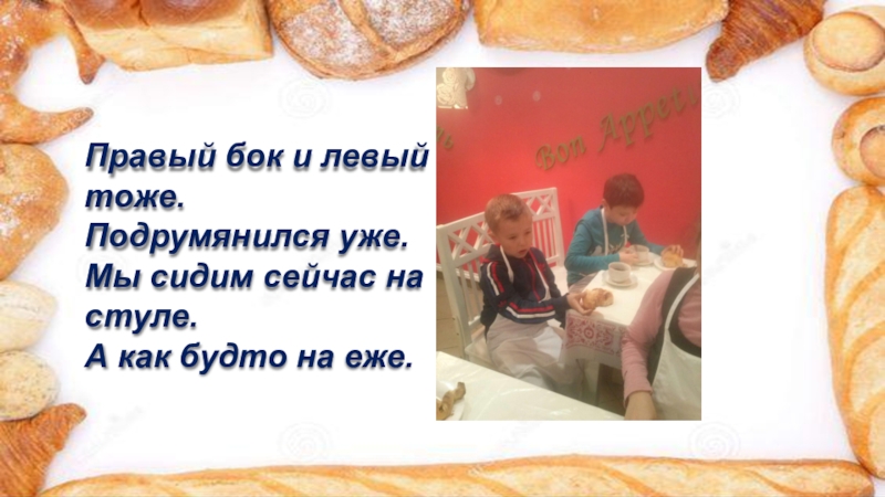 Слайд 14Правый бок и левый тоже. Подрумянился уже. Мы сидим сейчас на стуле. А как