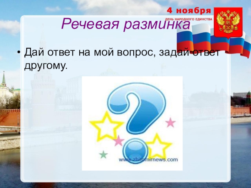 Речевая разминкаДай ответ на мой вопрос, задай ответ другому.