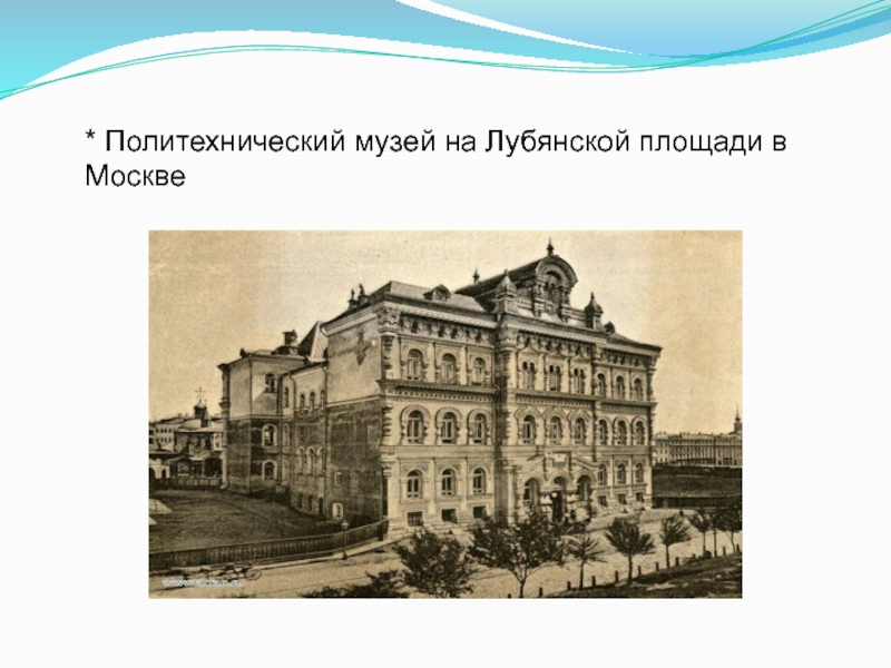 Слайд 15* Политехнический музей на Лубянской площади в Москве