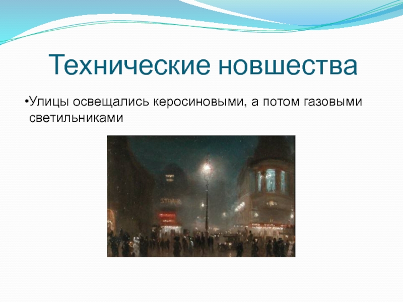 Технические новшества Улицы освещались керосиновыми, а потом газовыми светильниками