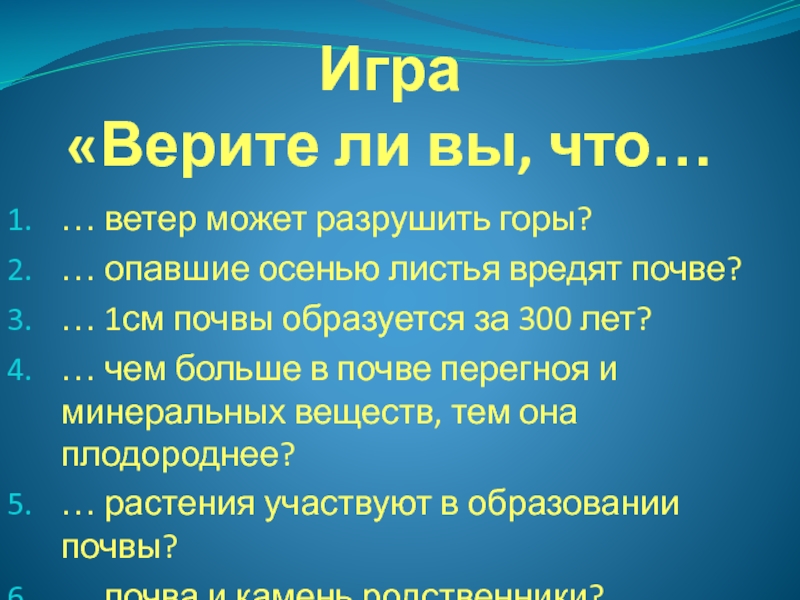 «Верите ли вы, что…