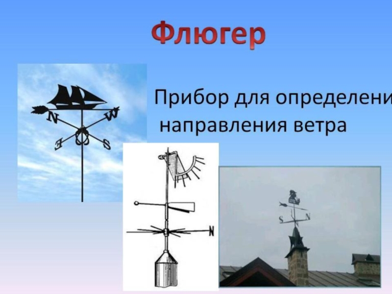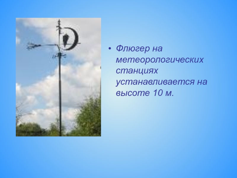 Слайд 18Флюгер на метеорологических станциях устанавливается на высоте 10 м.
