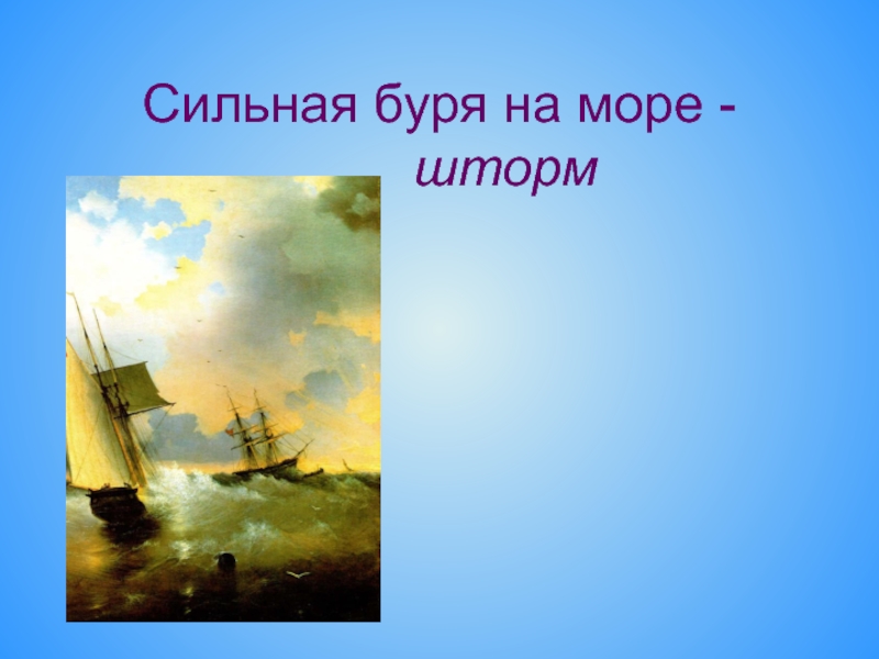 Слайд 15Сильная буря на море - шторм