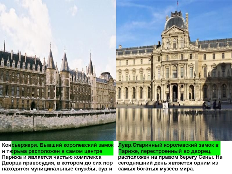 Лувр.Старинный королевский замок в Париже, перестроенный во дворец, расположен на правом берегу Сены. На сегодняшний день является одним из самых богатых музеев мира.