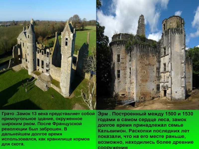 Эрм . Построенный между 1500 и 1530 годами в самом сердце леса, замок долгое время принадлежал семье Кальвимон. Раскопки последних лет показали, что на его месте раньше, возможно, находились более древние сооружения